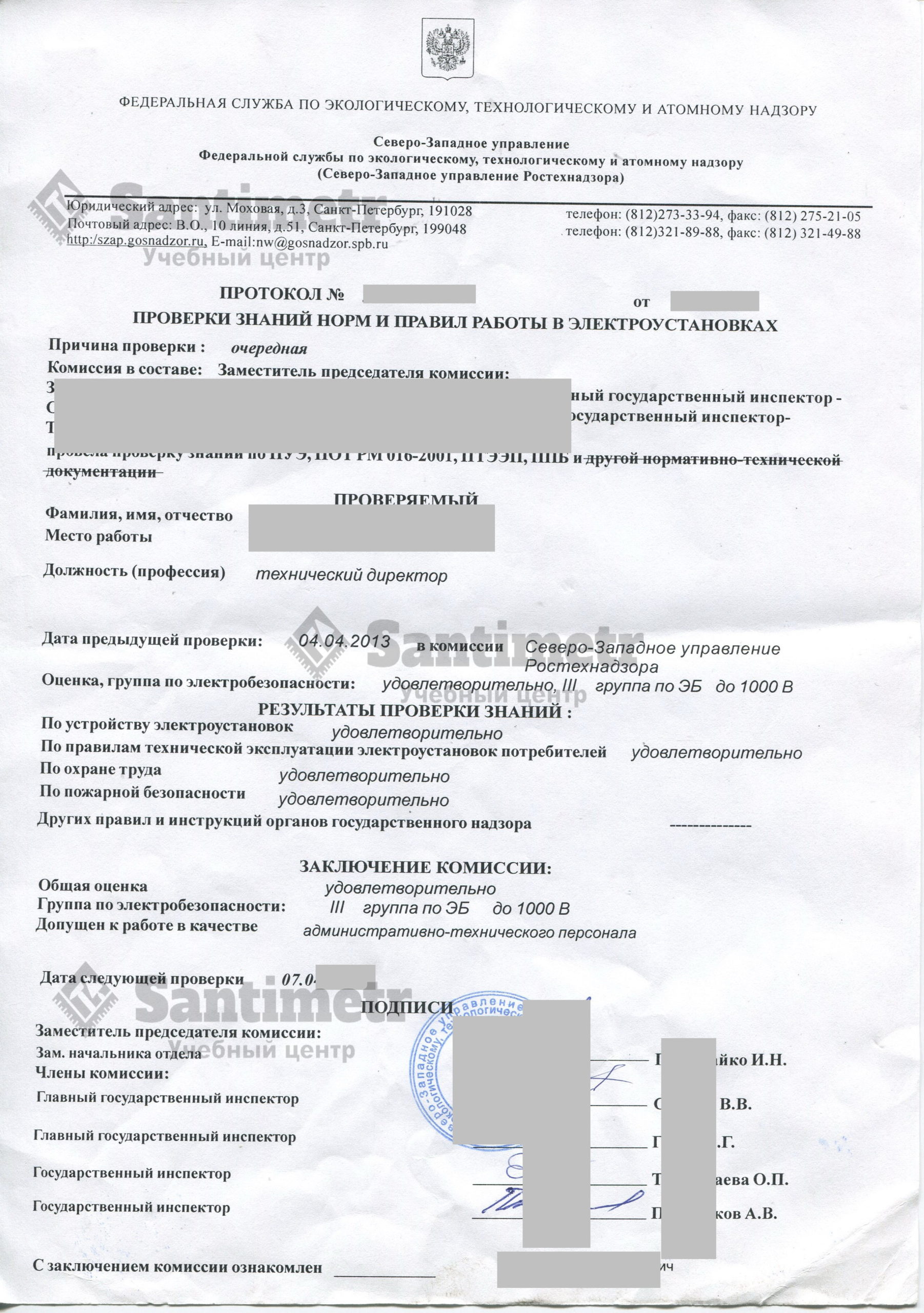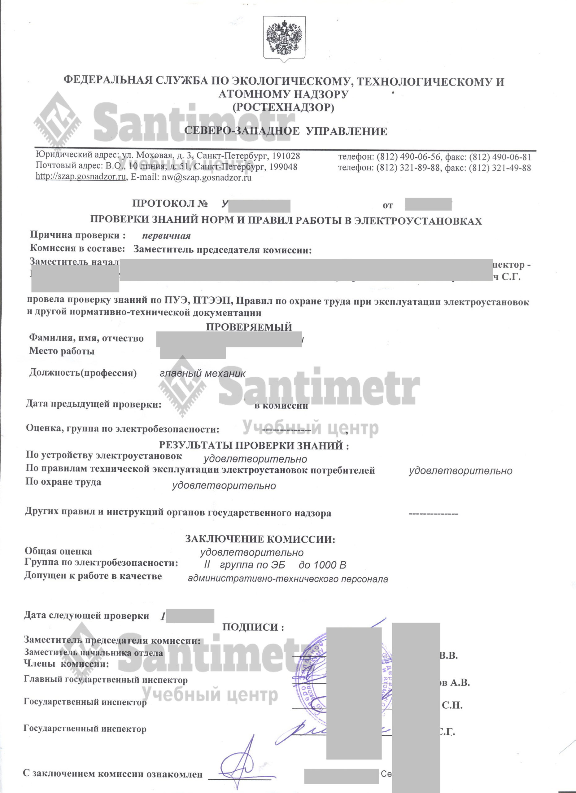 УЦ ДПО «Сантиметр»протокол иудостщврение 5 и выше 1000в