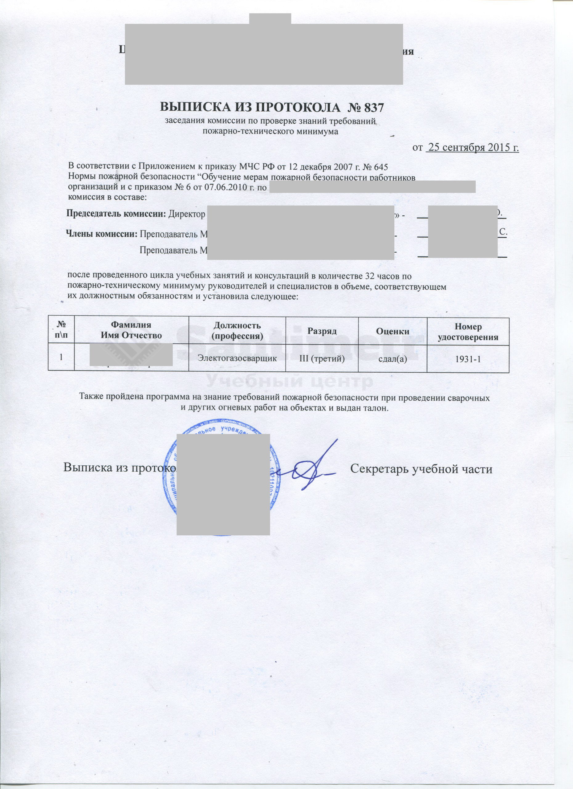 Купить данный документ лучше у нас — у лицензированного учебного центра. Всё обучение будет сделано дистанционно без отрыва от производства. На учёбу вам ходить не придётся. У нас есть доставка по всей стране. Чтобы вы не сомневались в изготовлении — будет выслан скан готового документа и протокола.