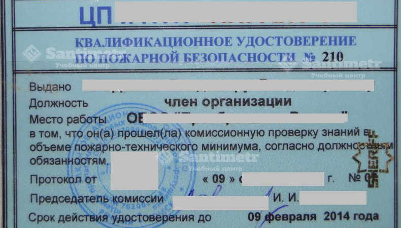 Образцы удостоверений проверки знаний пожарной безопасности